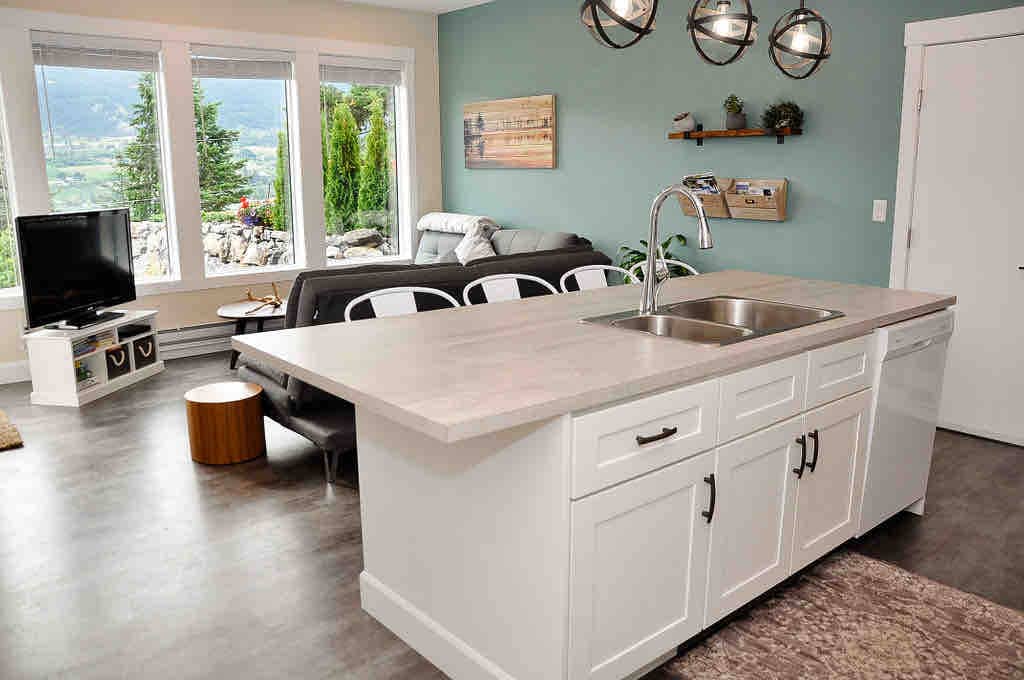 Lake Country (eski adıyla Winfield) adlı küçük bir toplulukta bulunan 1500 fitkarelik rahat bir misafir süiti, havaalanına arabayla sadece 10 dakika, Kelowna şehir merkezine 30 dakika, Vernon şehir merkezine 30 dakika ve hem Big White'a hem de Silver Star'a 50 dakika mesafededir.