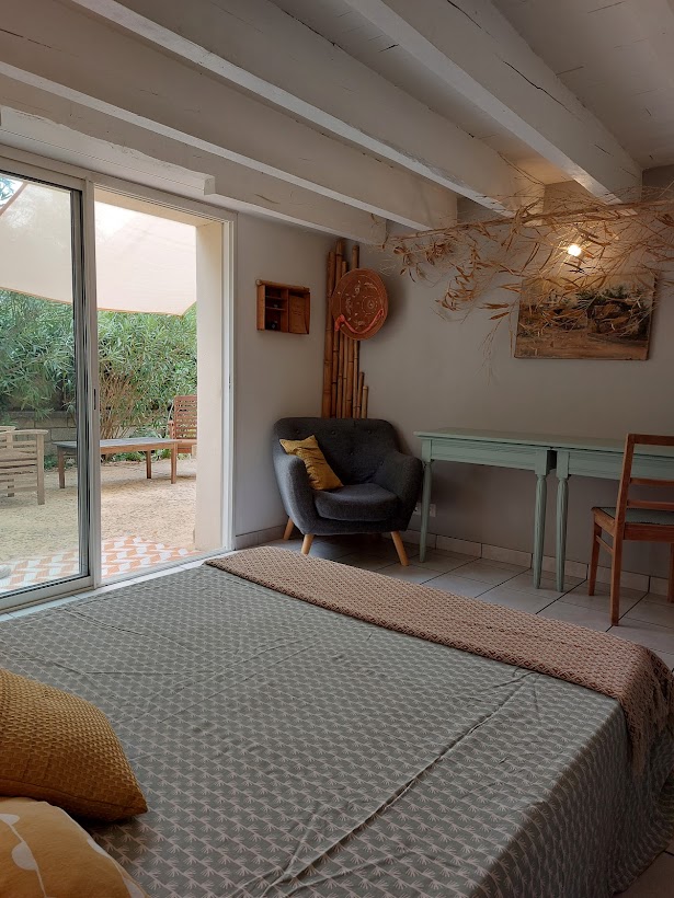 Size ayrılmış bir kapıdan, kısa bir garaj yolundan ve doğuya bakan bir terastan girersiniz Salon alanı ve çekyatı olan bir oturma odası, tam mobilyalı mutfağa sahip yemek alanı. Ebeveyn banyosu ve dolabı olan 180 genişliğinde yepyeni bir yatağı olan bir yatak odası; Sakin ve komşu yok! Havuz çok yakındır ve bahçenin keyfini sessizce çıkarabilirsiniz. 160 genişliğinde " La Maison du Soapé" deki yepyeni çekyat!