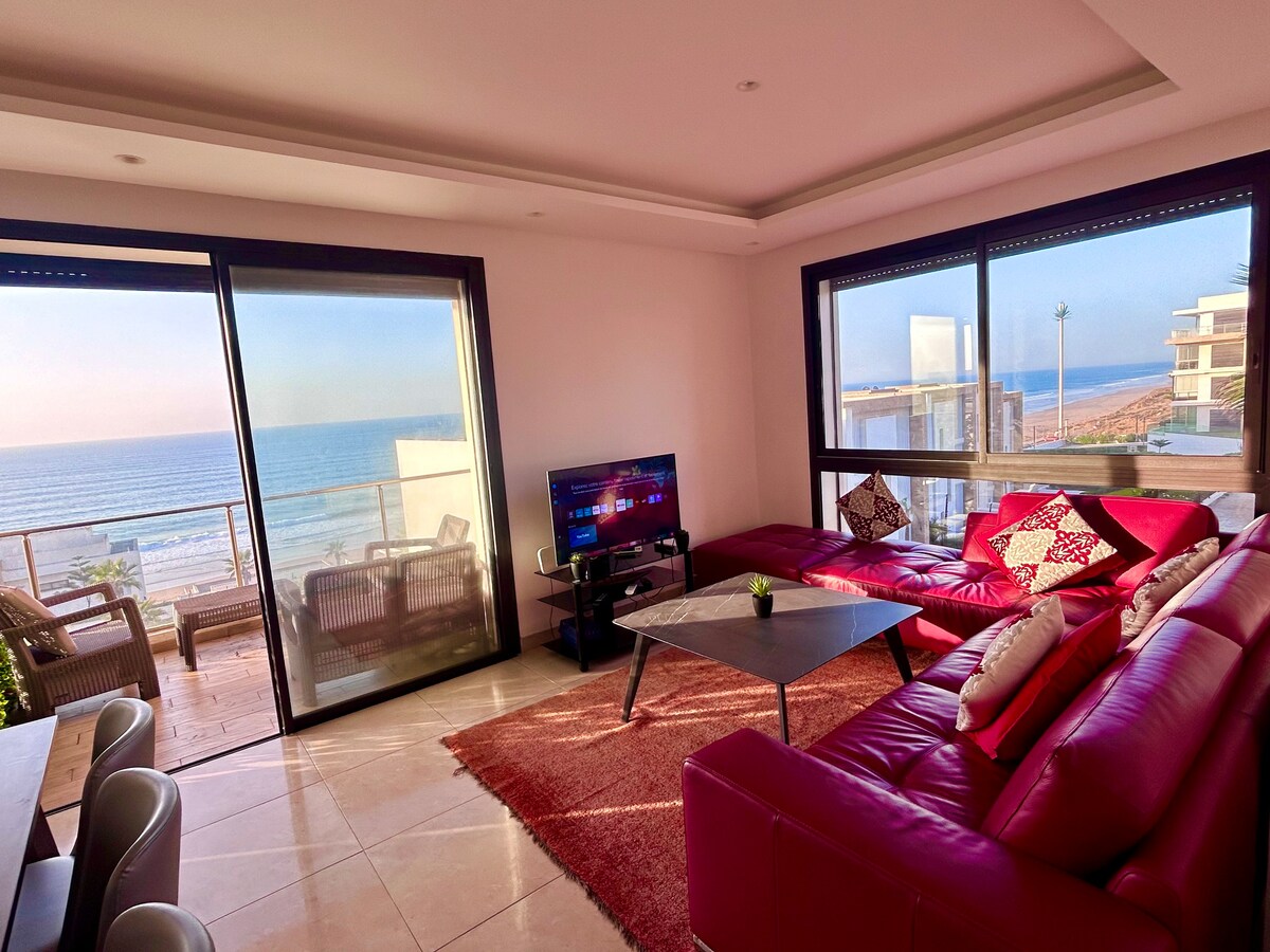 Panoramik deniz manzaralı bu sessiz , temiz, çok iyi donanımlı balkonda rahatlayın. King boy yatağı olan bir yatak odasından oluşur. Oturma odasında yatak olarak da kullanılabilen dört geniş 85 mm genişliğinde şilte bulunmaktadır . Donanımlı bir mutfak ve İtalyan banyosu. plajın yanındaki dairede klima vardır. Mehdiya'da, plaja sadece birkaç adım ve Bouregreg marinasına 32 km uzaklıkta. Gerçekten olağanüstü.