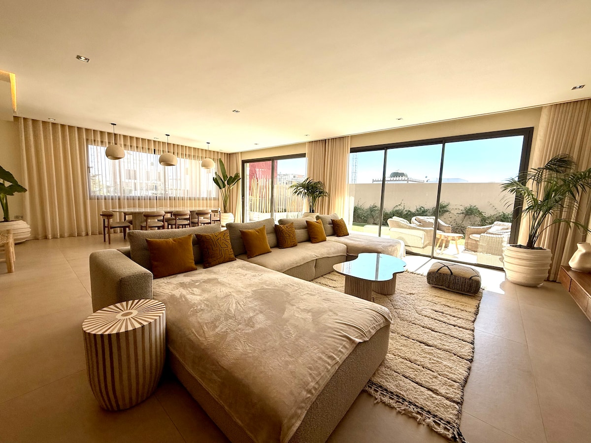 Villa AlJannah'a hoş geldiniz. Essaouira'ya 5 dakika mesafede, 4 süit, 4 banyo, zellij havuz, yemyeşil bahçe ve hizmetler (temizlikçi + kahvaltı) dahil lüks villa. Tam donanımlı mutfak, zarif oturma odası, asil malzemeler, zarif mobilyalar. Douar Laarab'da yer alır, Marakeş yoluna hızlı erişimi vardır. Huzur, konfor ve zarafet arayan aileler veya gruplar için idealdir. Deneyimlemek için gerçek bir cevher.