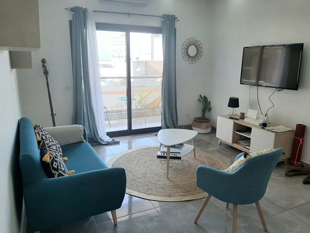 Zarif ve düzenli bir atmosfere sahip modern ve aydınlık bir daireye hoş geldiniz. Konforunuz için tasarlanmış, kaliteli olanaklara, birinci sınıf yatak takımlarına, özel otoparka, H24 güvenlik hizmetine, asansöre sahiptir. Dairemiz sizi okyanustan birkaç dakika uzaklıktaki sıcak bir ortamda karşılar. Çiftler, aileler veya arkadaş grupları için bir kaçamak için mükemmeldir. Restoranlar, pazarlar ve plajlar, Dakar'ın tadını çıkarmak için kolayca erişilebilir.