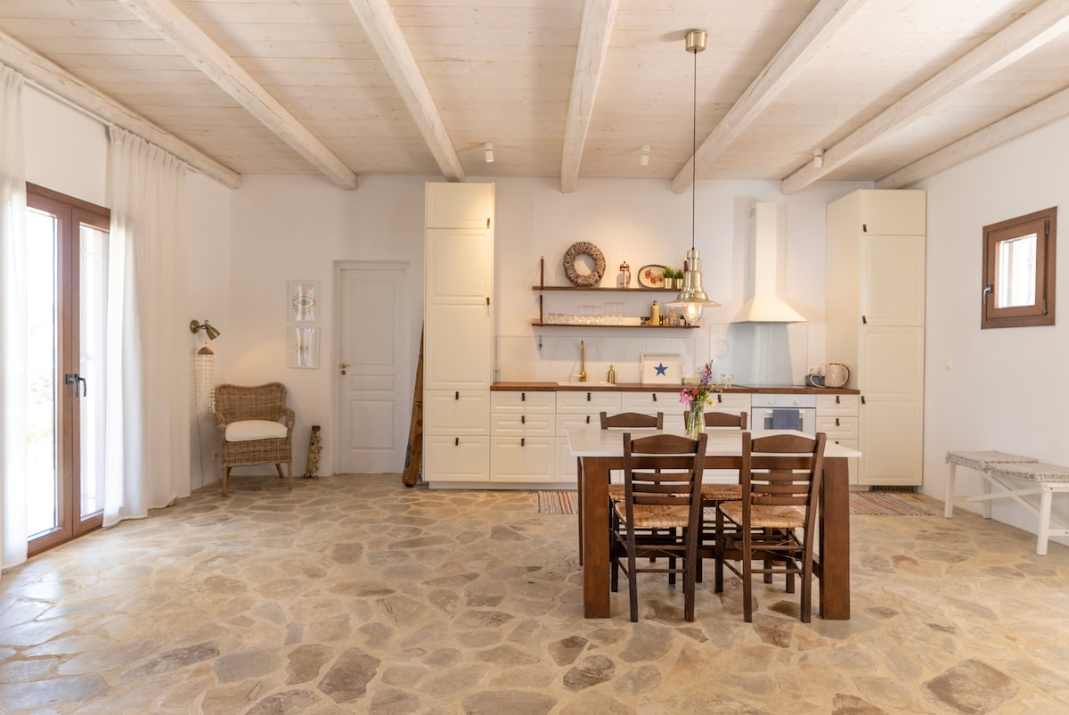 A beautiful neoclassical home only 100m from the beach, will offer you unforgettable vacations! With its ideal location, guests can enjoy the best of both worlds- a tranquil escape from the hustle and bustle of the city, while still being within walking distance to the beach. The interior is beautifully decorated, with a cozy and inviting atmosphere, perfect for relaxation. The area is rich in restaurants, traditional taverns & bars. Free WIFI and parking