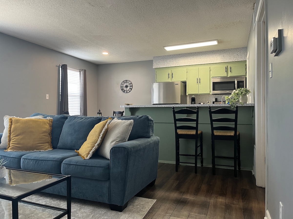 Experience the best Kansas City has to offer in our modern Riverside apartment, perfectly situated between KCI airport and downtown KC. Catch a Royals game at the K or Chiefs game at Arrowhead Stadium, enjoy concerts at the T-mobile center, or explore family friendly fun at Worlds of Fun or the Kansas City Zoo. There is a dedicated workspace and comfortable amenities, including the community center across the street. This stylish apartment is ideal for both business and leisure stays.