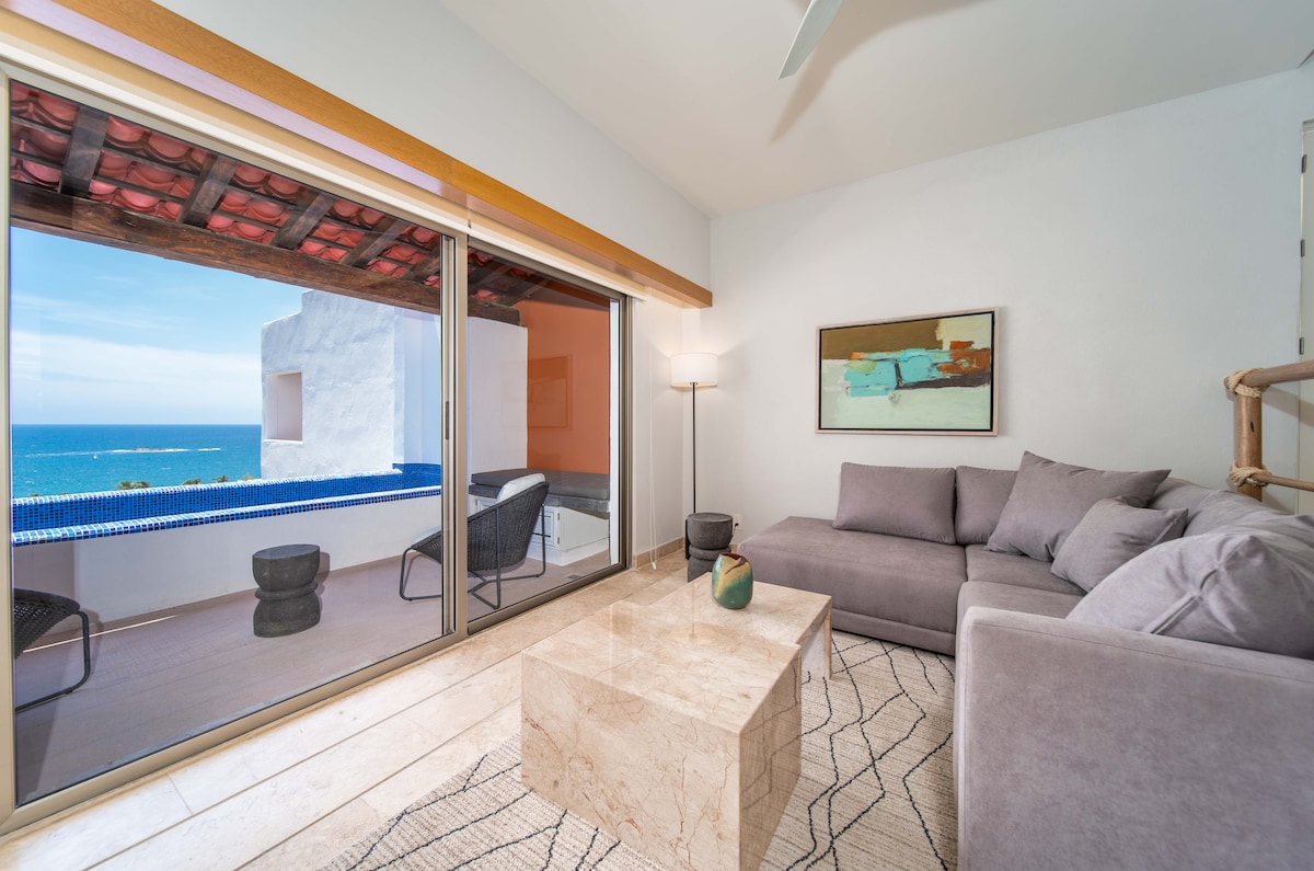Camino Real Huatulco Oteli içinde bulunan süit, deniz manzaralı teraslı yatak odası, 2 banyo, çekyat (4 tek kişilik yatak), özel havuz, yemek odası, küçük mutfak, teras ve klima. Kasa sunmuyoruz. Camino Real Huatulco özel süit, Meksika'nın Pasifik Kıyısında bulunmaktadır. Okyanus manzaralı teras ve hamaklı ana yatak odası, 2 banyo, çekyat (4 tek kişilik yatak), küçük kapalı özel havuz, yemek odası, küçük mutfak ve klima.