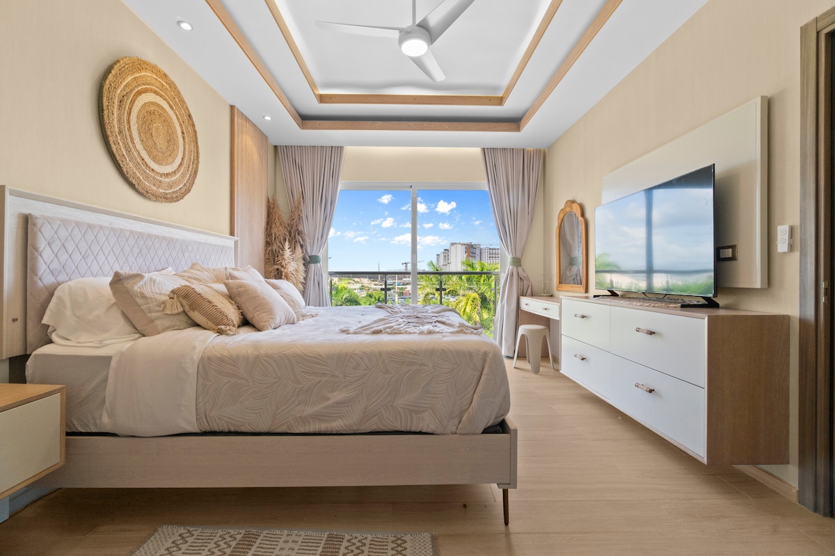 La Isla Royal - Luminancia Eterna, a serene one-bedroom apartment in Miches, Dominican Republic. This unit features a spacious layout with a comfortable bedroom, a well-equipped living area, and all the modern amenities you need, including Starlink Wi-Fi, air conditioning, a washer/dryer, a fully equipped kitchen, and hot water. Enjoy easy access to the shared pool and patio, as well as nearby beaches and vibrant attractions. Keypad entry and 24/7 support ensure a smooth and enjoyable stay.