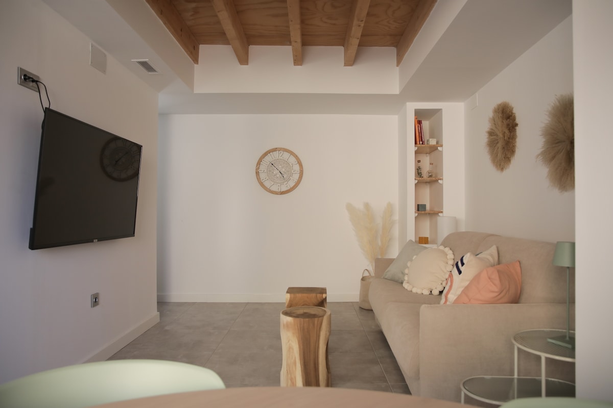 Açık teraslı, 55" TV ve NETFLIX, parke zemin ve mermer banyolu, çiftler ve aileler için ideal, aydınlık ev. Alicante'nin merkezinde, tarihi ve sanatsal merkezde, mağazalar, teraslar ve restoranların bulunduğu ticari bölgede, metro-tramvay durağına 2 dakika, plaja ve sahil yoluna 10 dakika yürüme mesafesinde, aynı binada halka açık otoparka erişimi bulunmaktadır. Temiz, çok sakin ve sessiz bir topluluk, komşulara saygı göstermeyi gerektirir.
