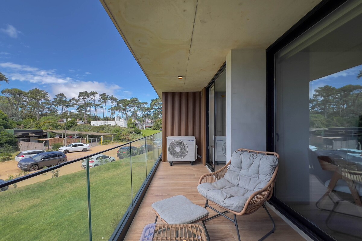 Punta Ballena'da su kenarında muhteşem bir daire. Casa Pueblo'nun yanında, Casa y Museo del artist Carlos Páez Vilaró . 2 ebeveyn banyolu yatak odası, entegre mutfak ve yemek odası, oturma odası ve büyük bir terasa sahiptir. Otomatik klima ve jaluziler. Çarşaflar, havlular, şezlonglar ve şemsiye dahildir. Ekstra ücret karşılığında isteğe bağlı temizlik hizmeti. Ekstra ücret karşılığında isteğe bağlı bisikletler.