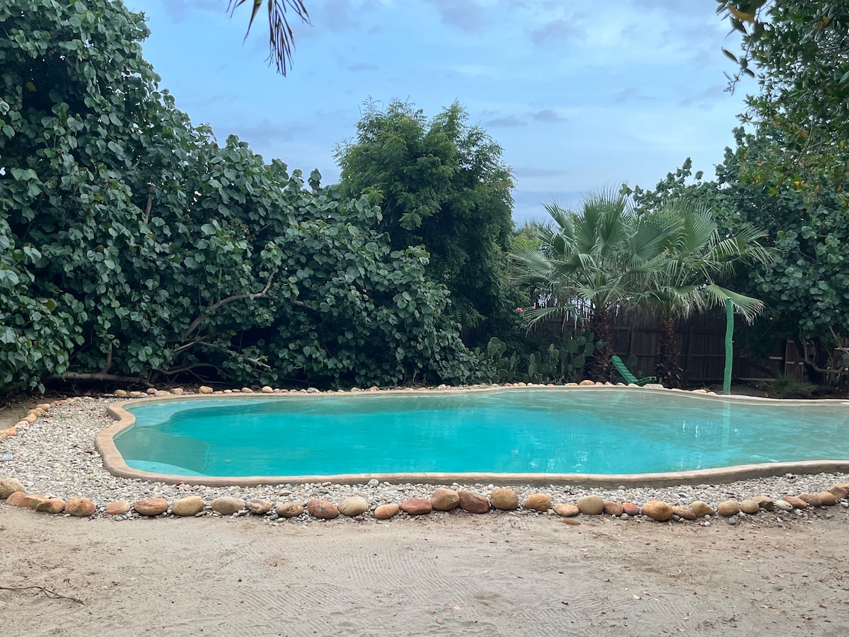 Plaja sadece bir blok uzaklıktaki Villa Margarita'daki stüdyo daire, rahat bir konaklama sunuyor. Bu iki katlı stüdyoda zemin katta adalı tam donanımlı bir mutfak bulunuyor. Üst katta palapa çatısı, gömme kanepe, gömme dolap ve ebeveyn banyosu olan geniş bir yatak odası var. Starlink internetin keyfini çıkarın, havuza dalın veya dambıllarımızla egzersiz yapın. Harika konumumuz plaja sadece birkaç adım uzaklıkta, restoranlar ve mağazalar yürüme mesafesinde. Sizi ağırlamayı sabırsızlıkla bekliyoruz!