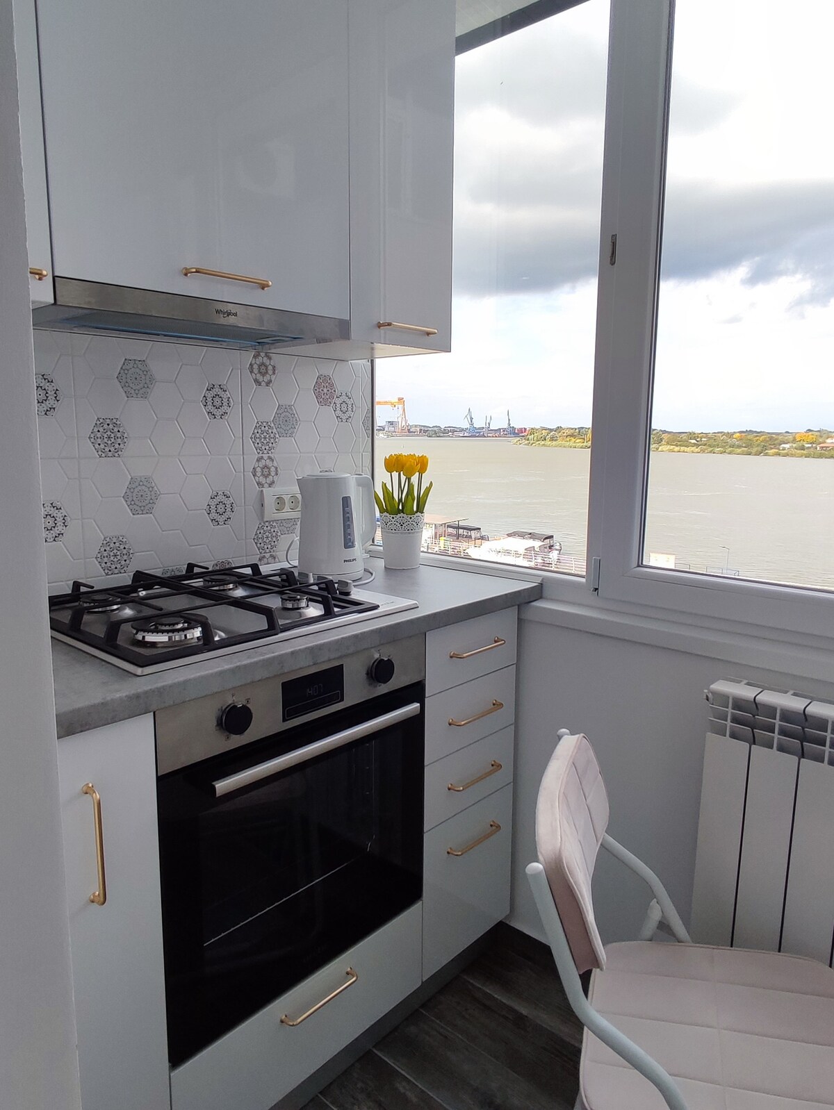 Daire şehrin en güzel bölgesinde bulunmaktadır. Tulcea ve Tuna uçurumuna bakıyor. Manzara uçuruma doğru olduğu için Tuna kanallarında seyahate çıkan korselere ve teknelere bir dakika uzaklıktadır, sessizliğin ve uykunuzu bozabilecek arabaların yokluğunun tadını çıkarabilirsiniz. Sabahları rüya gibi bir ortamda kahve içebilir, odanın içinden akacak güneş ışınlarının tadını çıkarabilirsiniz.