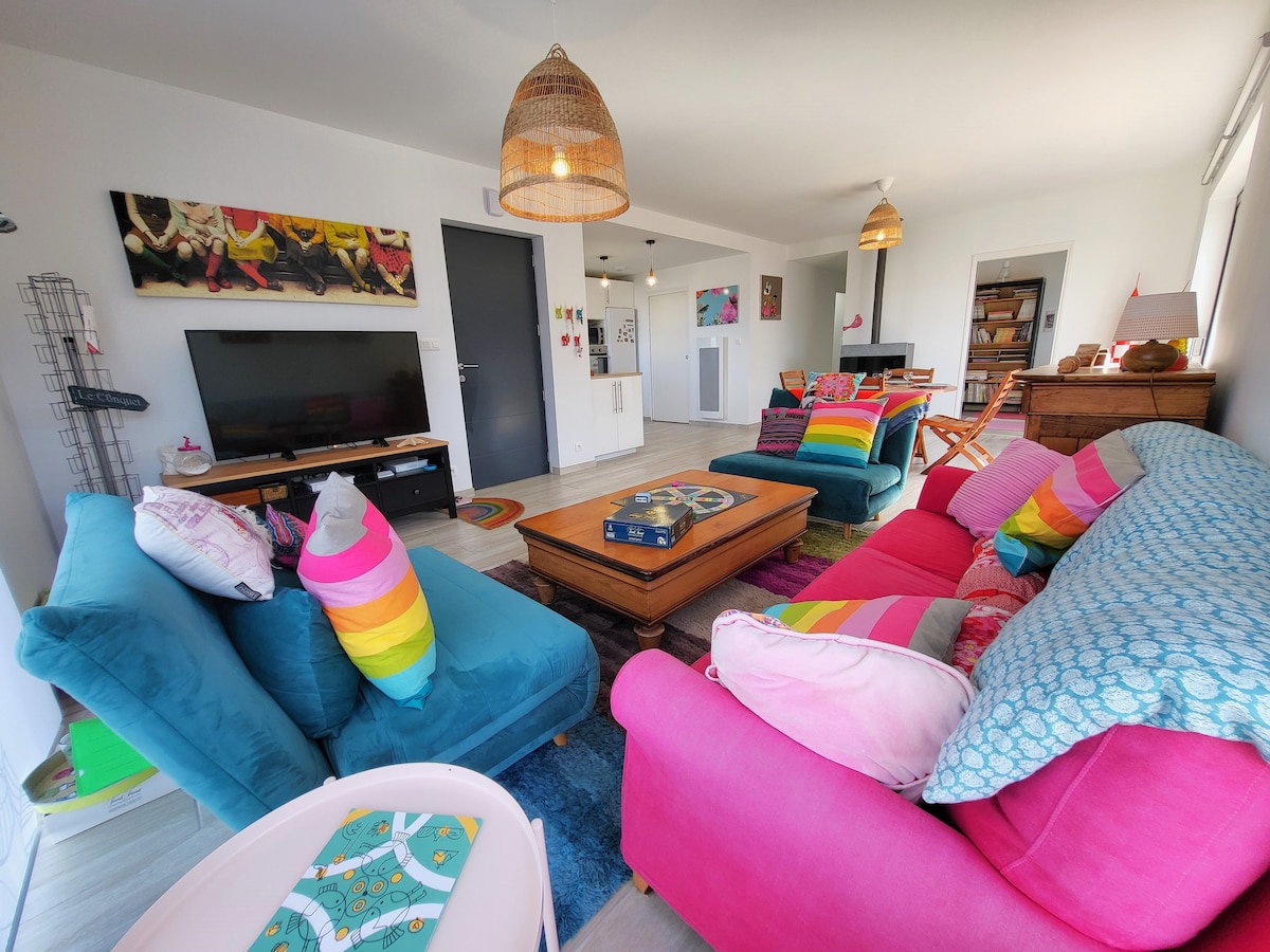 Dünyanın sonundaki deniz fenerlerinin bulunduğu "La résidence des phares du bout du monde"da konaklayarak Crozon Yarımadası'nı keşfedin. PIERRES NOIRES deniz feneri kır evi, enerjinizi yenilemek için mükemmeldir. Yeni kır evi - "ENDÜSTRİYEL TARZ" dekorasyon Tek katlı (100m²), güneybatıya bakan, teras, özel ve kapalı bahçe (500m²) 30m²'lik oturma odası, tam donanımlı mutfak, sobalı oturma odasına açılan, bir SPA'ya ev sahipliği yapan sağlıklı yaşam alanına erişim sağlayan bir atölye camı. 2 geniş yatak odası, bir banyo ve bir kiler-çamaşır odası