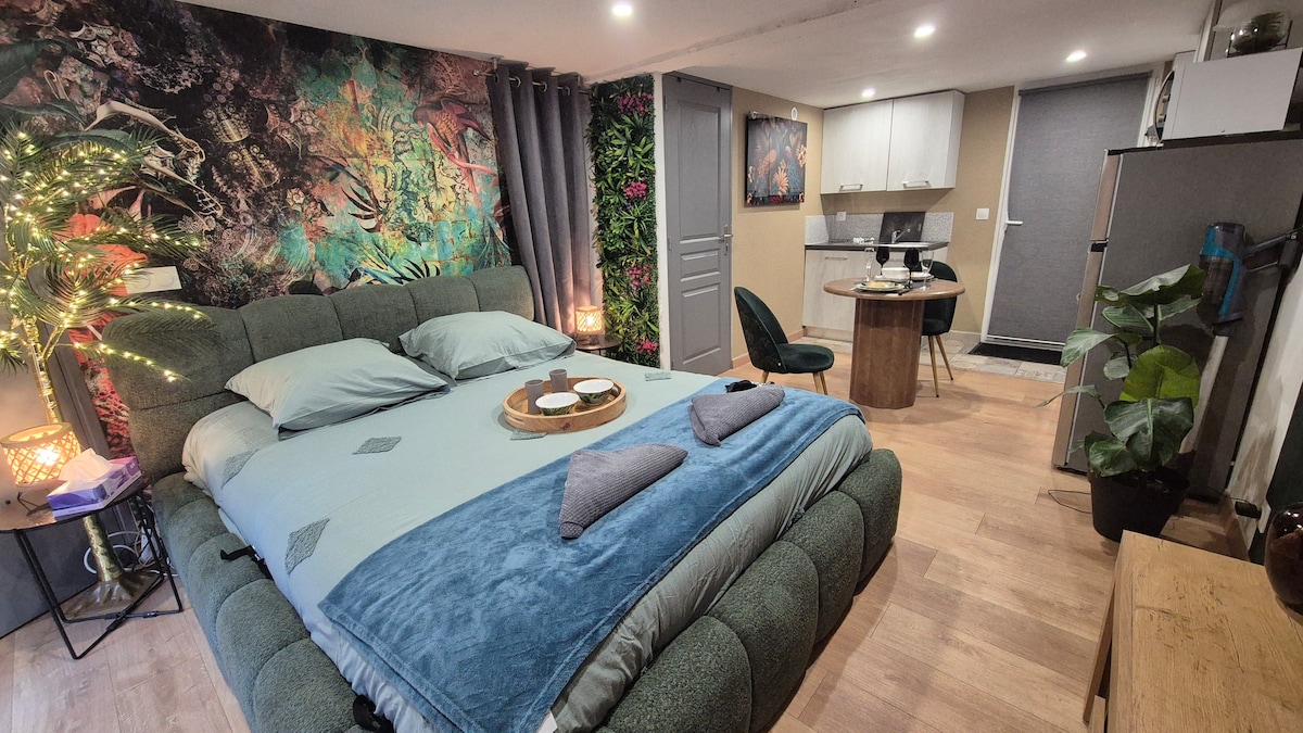 La Grange Romantique, size dinlenme, samimiyet ve refah anı sunmak için üst düzey ekipmanlara sahiptir. Burada, rahatlatıcı bir spa, geleneksel bir sauna ve ağırlıksız bir anın tadını çıkarmak için bir ev ağı bulacaksınız. (özel erişim) Ahırın orijinal çerçevesini koruyarak, gece kısmı için tavan yüksekliği odanın ortasında 1,82 m'yi geçmemektedir, bu nedenle bu binanın cazibesini koruyoruz.