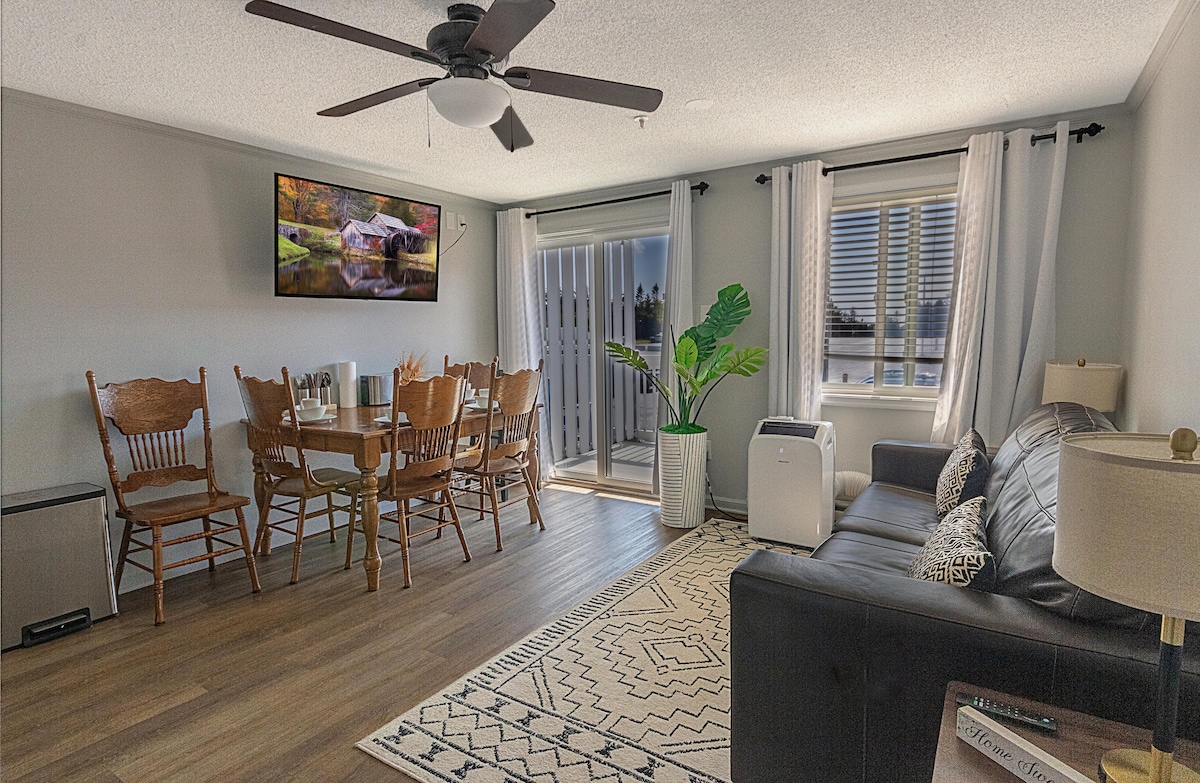 Modern meets old world charm in this newly renovated Highland House condo! Enjoy a fabulously appointed unit with many unique barnwood accents! The kitchen includes a full size refrigerator, dishwasher, microwave, toaster, coffee pot, induction cooktop and a pullout table for two. The king-sized memory foam bed is amazing and at 14 inches off the ground, is the perfect height to store unused luggage.