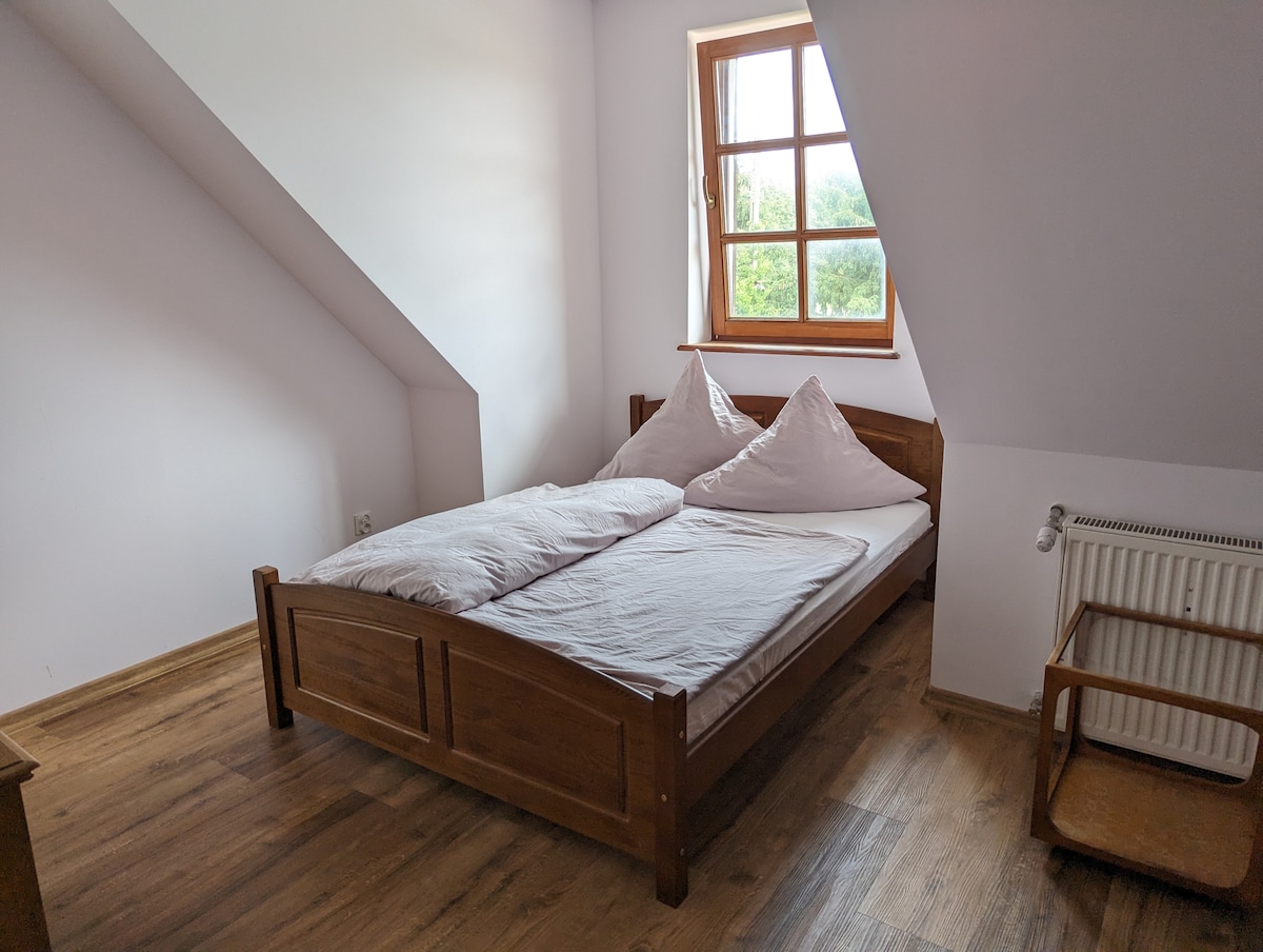 Three Vistula Mounds'un en üstündeyiz. Brenna, Ustronia ve Vistula belediyelerinin kesişim noktasında. Muhtemelen Polonya'nın bu kısmındaki en yüksek puanlı tarım turizmiyiz. Nefes kesici manzaralar, temiz hava ve her şeyi kapsayan özgürlük sizi bekliyor. Elimizin altında beş odamız var. Fazladan yataklı iki kişi, bir üç ve iki beş. Yemek hazırlıyoruz ama atıştırmalıklar hazırlayabileceğiniz küçük bir mutfak da var.