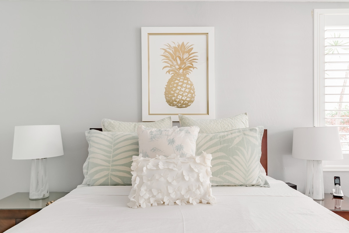 Bir doğa koruma alanına ve Kona sahiline bakan The Koi House, rahat bir yaşam tarzını yansıtıyor. Bir koi göletinin üzerindeki yemyeşil bir yürüyüş yolundan geçerek misafir kanadına, rengarenk boho tekstil ürünleri ve doğal vurgularla tasarlanmış sıcak bir mekân olan Hala Süiti'ne adım atın. Güzel bir ortak havuzun keyfini çıkarın, verandadan gün batımının ve okyanus manzarasının tadını çıkarın ve kendinizi rahat Hawaii yaşamına bırakın. Tüm maceralarınız için mükemmel bir merkezdir ve Kailua-Kona'nın merkezine arabayla 10 dakika mesafededir.