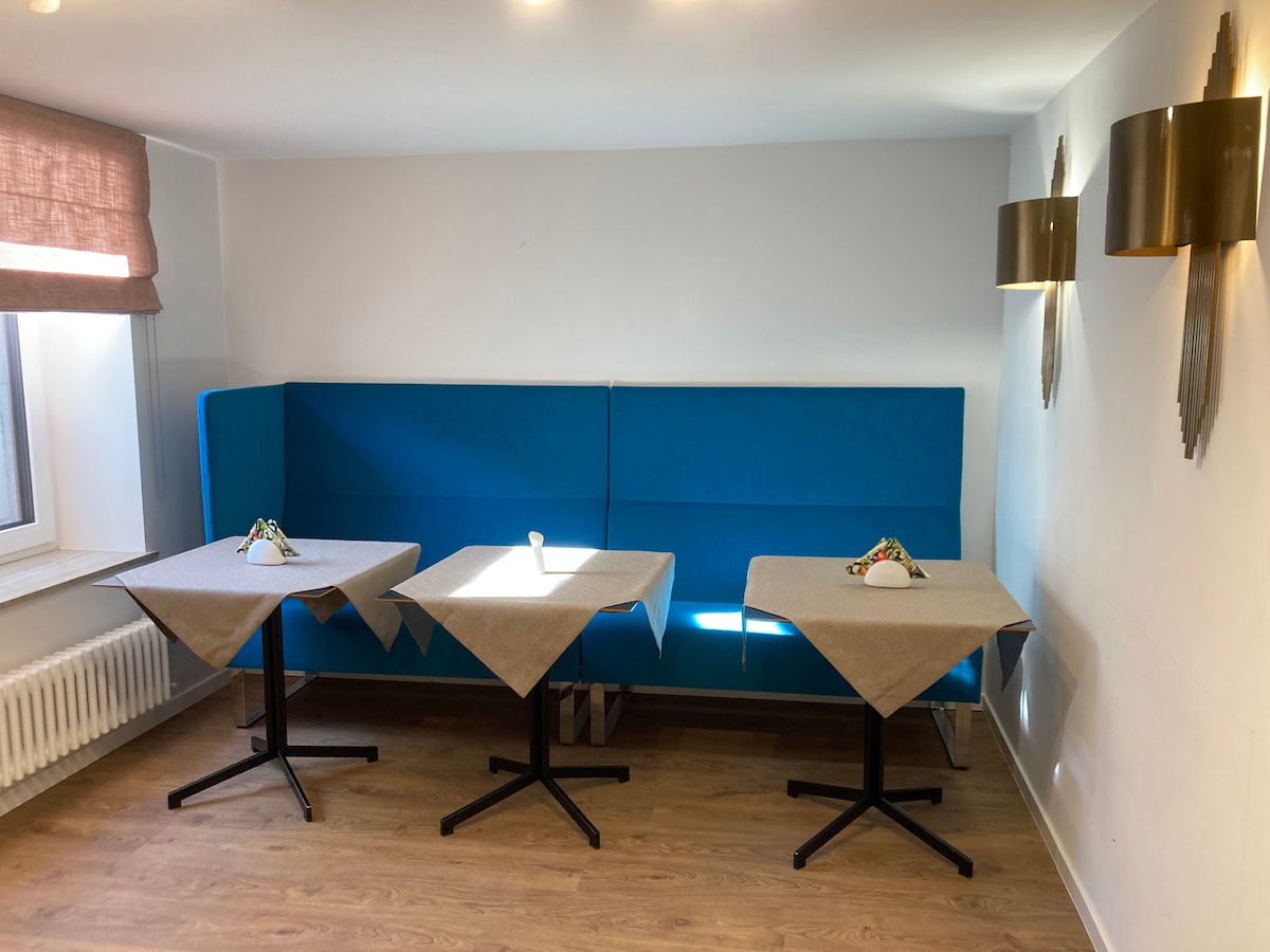 PREMIUM Bed & Breakfast'a hoş geldiniz. Zengin bir tarihe sahip, 1930 yılından kalma, son derece güzel bir savaş öncesi apartman dairesinde bir oda. Şehrin tam merkezindeyiz, Teutonic Şatosu'na sadece 300 metre mesafedeyiz. Rahat bir çift kişilik yatağı olan çift kişilik oda. Klima. Duş, tuvalet, otel kozmetik ürünleri, havlu, TV bulunan özel banyo. Ücretsiz WIFI. Talep üzerine ek ücretli kahvaltı sunuyoruz - yerinde sipariş verebilirsiniz.