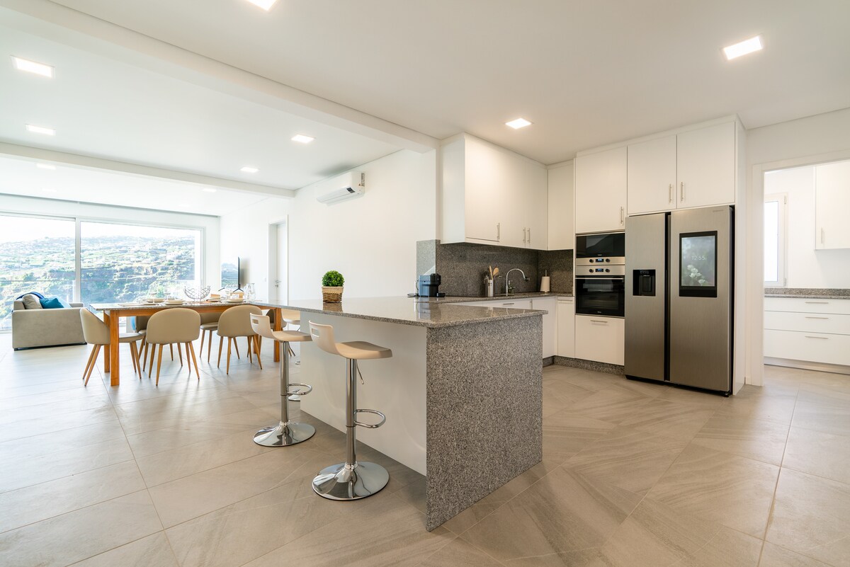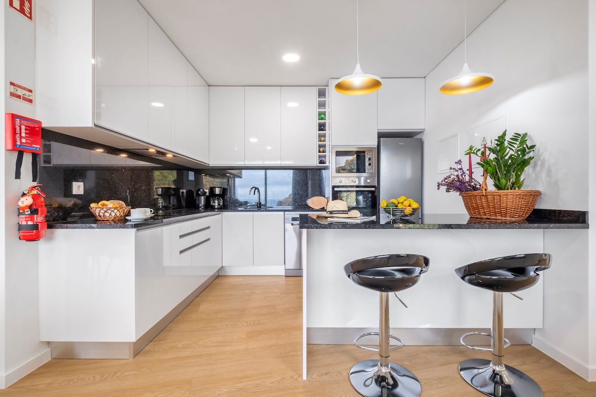 Cennete hoş geldiniz! Sonsuzluk havuzunun yanında muhteşem Atlantik okyanusu manzarasına sahip konforlu villamızda konaklayın! Bu ev ilk olarak 1932 yılında inşa edilmiş ve o zamandan beri "Casa do Vinho Velho", "Eski Şarap Evi" olarak bilinmektedir. Büyük büyükannem yaşlı adam "Vinho Velho" ve onun şarap ve tarım tutkusu hakkında hikayeler anlatırdı. Ev yenilendi, ancak mutfaktaki eski tuğla fırın ve oturma odasında asılı üzümler için 3 taş kayası gibi eski özellikleri koruduk!