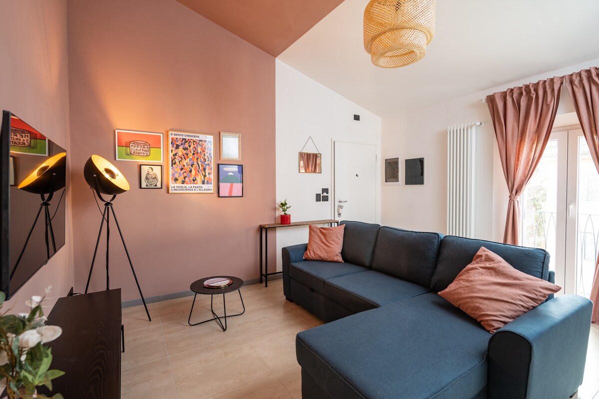 Bologna'nın ünlü revaklarının üzerinde, tamamen yenilenmiş zarif bir daire, yakın zamanda UNESCO tarafından Dünya Mirası olarak atandı. Alan, tam donanımlı bir mutfağa sahip geniş bir banyo ve açık bir alan ile iki kişi için rahat bir yatağa sahip bir yaşam alanı içerir. Restorasyon sırasında, 19. yüzyıla kadar uzanan freskler keşfedildi ve şimdi sofistike bir aydınlatma sistemi ile geliştirildi. Rafine dekor, 1970 'lerin Rokoko zenginliğini ve avangartını hatırlatıyor.