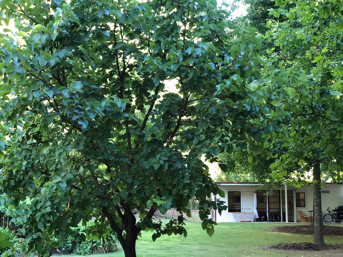 Ana evin arkasındaki sessiz bahçe ortamında konforlu 3 oda artı banyo oluklu kulübe/kulübe. Donanımlı küçük mutfak ve kablosuz internet bağlantısı. NE Victoria'da dağlar, nehirler, üzüm bağları, verimli bahçecilik bölgesi vardır. Günübirlik geziler için diğer turistik kasabalara yakındır. Altına hücum tarihi açısından zengindir, kasabanın tarihi doğasını hassas bir şekilde korur. Oteller, bira fabrikası, dut çiftlikleri, yürüyüşler, bisiklet parkurları, zarif yemekler, butikler, ev eşyaları mağazaları, bal mağazası, hepsi kasabaya 10 dakikalık tepe yürüyüşü mesafesinde.