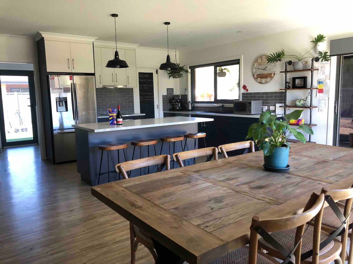 * 180 derece manzaralı yüksek özel teras. * Bir dönüm arazi üzerine kurulu rahat açık planlı ev. * Çiftler veya aileler için mükemmel. * Geniş ana süit. * Konforlu odun ateşli rahat salon. * Yaz için klima ve vantilatörler. * Ücretsiz kablosuz internet bağlantısı olan büyük Chromecast TV. * Trampolin. * Güvenli bir şekilde çitle çevrili. * Harika kuş yaşamı. * Güzel Wandiligong'un tüm lezzetlerine yakındır. * Bright'a arabayla sadece 5 dakika.