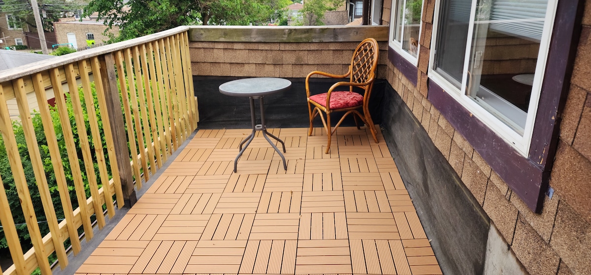 Chicago 2-Flat'ımın birinci katındaki dairede (tamamen özel) rahatlayın ve kendinizi evinizde hissedin. Bu ev, ister 2 gece ister 2 ay kalın, ihtiyacınız olabilecek her şeyle doludur. Daire genelinde kablosuz internet bağlantısı ve Netflix ile 3 televizyon bulunmaktadır. Kullanabileceğiniz güzel bir arka bahçe vardır ve sokakta park etmek ücretsizdir. Bodrumda çamaşır ve kurutma makinesi mevcuttur. Otoyollar ve otobüs de yakındır.