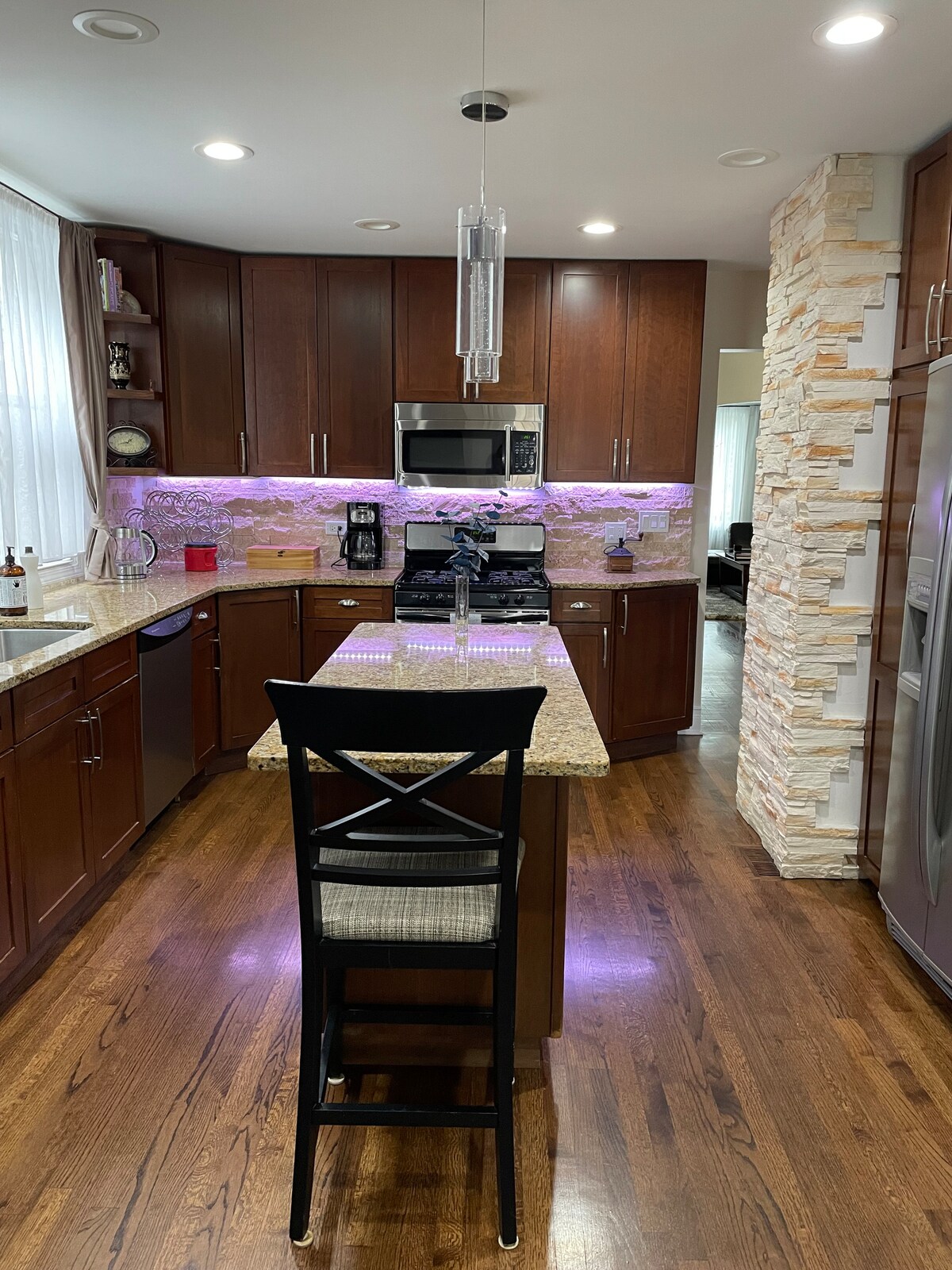 Jefferson Park'ta bulunan 2 daireli bir binada doğal ışıkla dolu güzel bir 2. kat dairesi. O'hare Havaalanı'nın yakınında, küçük işletmeler, dalış barları ve aile restoranlarıyla dolu. Şikago şehir merkezi trafiğe bağlı olarak 20-40 dakika sürer. Partnerim ve ben aşağıdaki dairede yaşıyoruz ve konaklamanız boyunca tüm sorularınızı yanıtlayabiliriz. Herkesin hoş karşılandığını hissetmesi için sıcak ve güvenli bir yer oluşturduk!