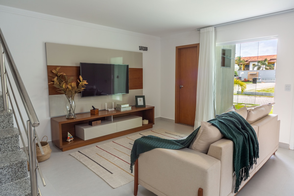 Hoş geldiniz! Burada ev sahipliği yapmayı seviyoruz ve amacımız hizmet etmek! Ah…ap…tam bir dubleks, güzel, sahile çok yakın. Her şeye çok yakın olacaksınız ve isterseniz her şeyi yürüyerek yapabilirsiniz. Taperapuan Plajı'na 5 dakika yürüme mesafesinde. Sitenin arka sokağında bakkal, restoran, bar, birahaneler, pastane, İtalyan restoranı, Japon restoranı, pizzacı ve galeriler var... Porto Seguro'nun kalbinde olacaksınız!