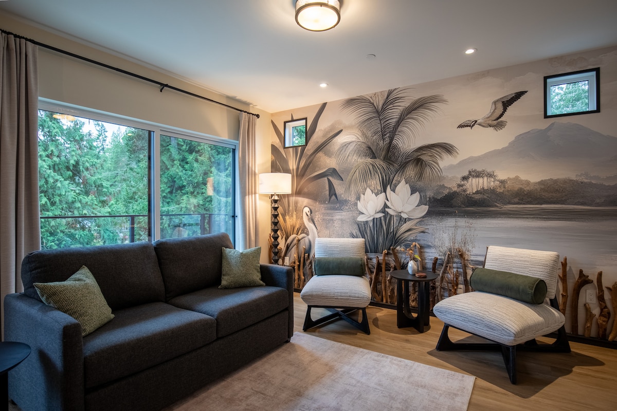 Seabank'taki süite hoş geldiniz! Courtenay ve Comox'a sadece on dakika, Mt. Washington'a otuz dakika uzaklıkta, geniş ve konforlu bir yatak odası (2 çift kişilik yatak) aydınlık, zemin üstü süit. Sabah espressonuzu yaparken balinaları izleyin ve maceranızı planlayın. Yakındaki muhteşem Seal Bay Park patikalarında yürüyüşe çıkın veya yerel plajları ve dağları keşfetmek için dışarı çıkın. Giriş, hemen önünde geniş bir park yeri bulunan kendi özel anahtarsız girişinizden yapılır.
