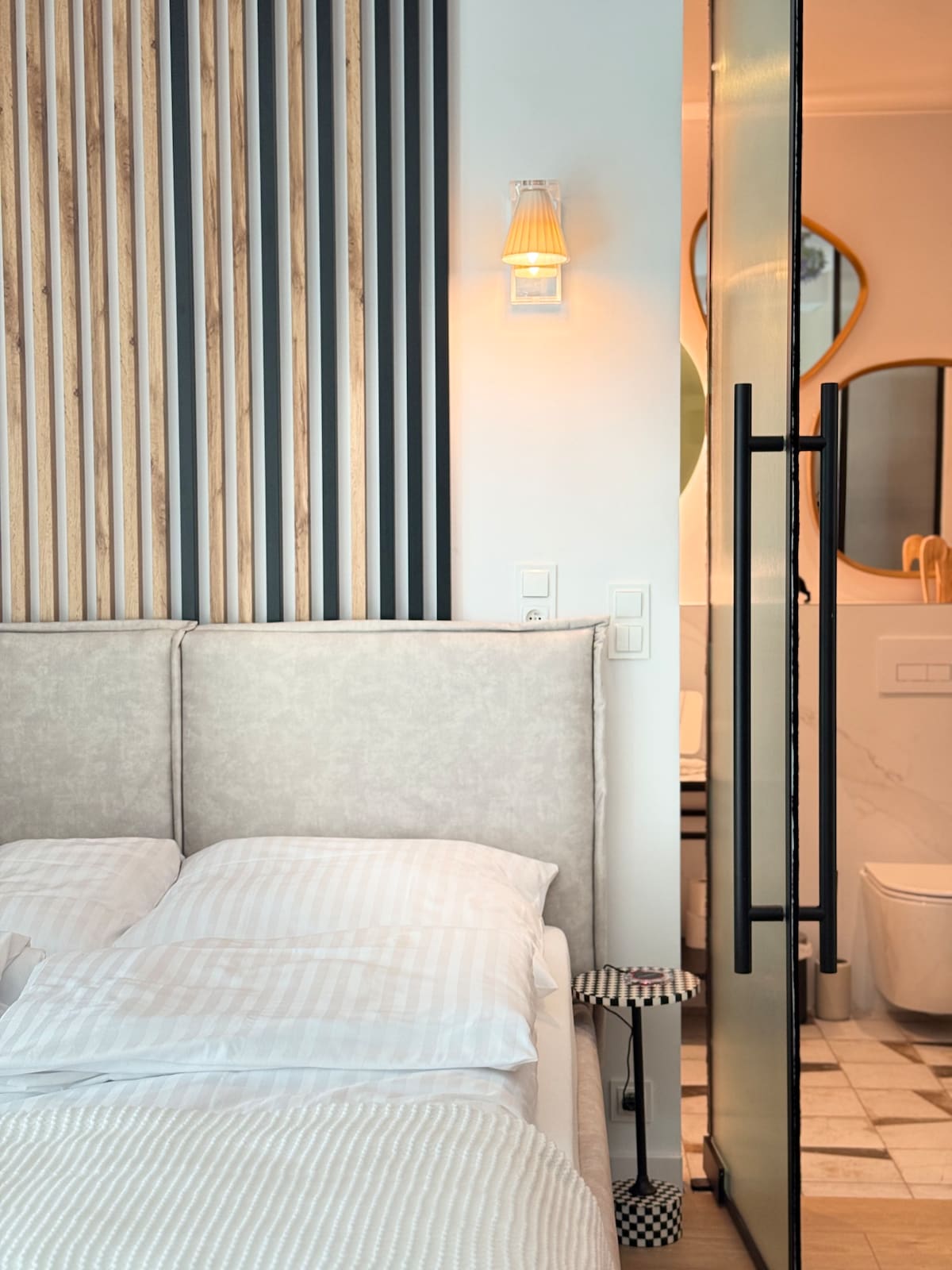 2 kişilik daire + 1 çocuk. Yakınlarda bir "Marcelinian Ormanı" var. Koşabilir, bisiklete binebilir, yürüyebilirsiniz. Mekânda çok sayıda mağaza, fırın, restoran ve yakındaki tenis kortları, bir buz pateni pisti, Lech Poznań Stadyumu ve King Cross Marcelin alışveriş merkezi. Eski Pazar Meydanı, Poznań Fuarı (yaklaşık 4 km) ve diğer turistik yerler toplu taşıma veya Uber/Bolt ile de mevcuttur. Poznań Ławica Havaalanı 2 km uzaklıktadır . Tren istasyonu yaklaşık 4,5 km.