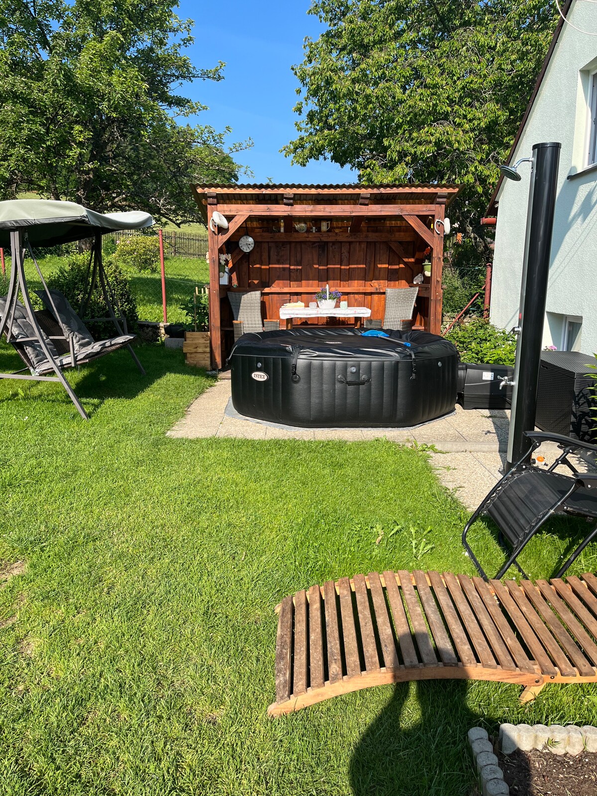 Ideální chalupa pro rodinnou rekreaci na Šumavě s celoročním provozem.Dvě ložnice (2+2 a 2 lůžka),dva obývací pokoje (2lůžka v horním), dvě vybavené kuchyně,dvě koupelny, tři záchody. V přízemí infrasauna a vířivka (při dostatku vody za příplatek),soukromá finská sauna vzdálená 1km (příplatek). Absolutní klid. Vlastní rybník.Venkovní dětské hřiště (houpačka, skluzavka, pískoviště). Nově postavená krytá letní kuchyně k venkovnímu posezení (pergola) s krbem, pitnou vodou,el. vařičem a elektřinou.