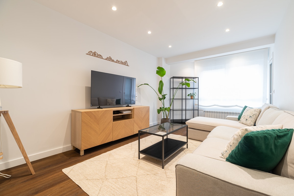 Santiago’s Apartment es un apartamento de diseño, en un edificio con portero físico 24h, en una calle con mucha luz y recién renovada. Garaje en el edificio. Y a 30 sg de la salida de la AP-9. Se puede ir a pie a c/ Príncipe, Casco viejo, el puerto… todo a un paseo. Las valoraciones son muy buenas, deseo que tú te vayas con igual sensación que las otras personas. Si te orienta para saber si es ideal para ti, los huéspedes han sido parejas de vacaciones y personas para estancias de trabajo.