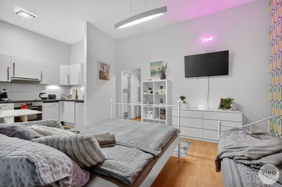 Prag'ın sessiz bir bölgesinde şık bir stüdyo. Çift kişilik yataklı açık alan, TV'li rahat salon ve kahve makinesi olan küçük mutfak. Altın detaylar, duş ve tuvalet malzemeleri bulunan zarif banyo. Kablosuz internet bağlantısı, manzaralı bar oturma yeri. Tramvay durağı kapıda, metro birkaç dakika uzakta. İstek üzerine ücretsiz park yeri mevcuttur — Greenpoint'e sadece 3 dakika yürüme mesafesindedir. Park tarihlerinin her zaman önceden onaylanması gerektiğini lütfen unutmayın.