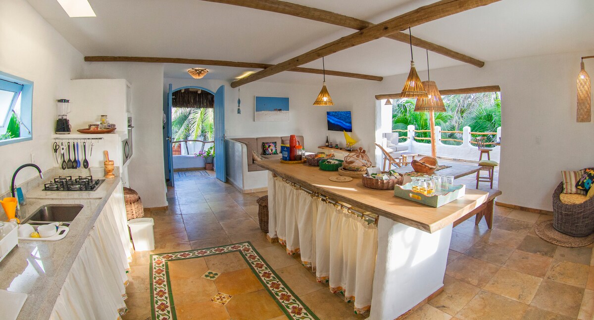 Kısa veya uzun süreli kiralamalar için ücretsiz kablosuz internet bağlantısı olan güzel bir sahil evi mevcuttur. Ev, Ceará'nın en güzel köylerinden birinde bulunmaktadır ve mağazalara, pazarlara, eczanelere ve restoranlara yürüme mesafesindedir. Deniz kenarında bulunuyor ve plaja doğrudan erişim ve rakipsiz deniz manzarası sunuyor. Plajda birkaç gün geçirmek veya bir düğün ya da çocuk isim verme törenini kutlamak isteyen aileler ve arkadaş grupları için idealdir. Özel partilere kapımız açık.