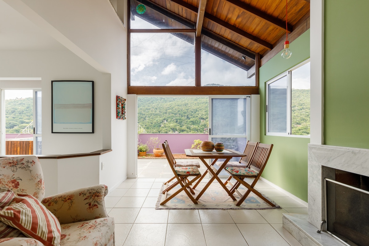 "Lagoa da Conceição" ve denizin nefes kesen manzarasına sahip, çiftler için ideal, özel bir çatı katı dairesi; Atlantik Ormanı'nın ortasında, "Canto dos Araças" mahallesinde yer almaktadır. Sessiz ve özel, rahat bir konumda, Lagoa mahallesinin merkezine sadece 2,5 kilometre, Lagoa da Conceição'ya 300 metre mesafede ve Costa da Lagoa'ya giden patikanın başlangıcındadır. Çiftler için ideal, panoramik ve romantik bir ev. Lagün merkezine arabayla 5 dakika, Mole/Joaquina/Galheta/Barra plajlarına ise 15-20 dakika mesafededir.