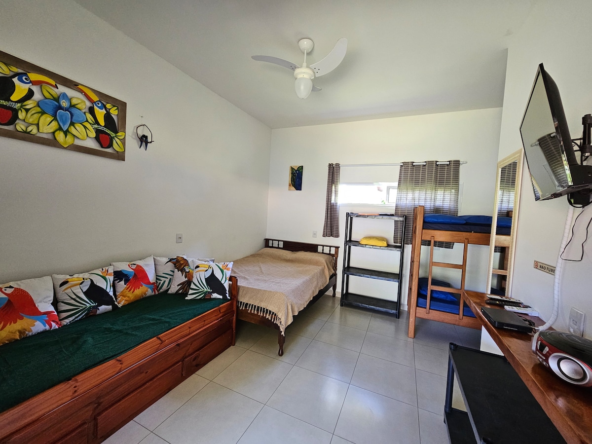Vermelha do Centro plajında, denize 3 dakika mesafede, sessiz bir sokakta rustik ev. Solarada ve Atlantik Ormanı'nın ortasında yer alan tropikal bir bahçe ile çevrilidir. 3 yatak odası, 1 süit vardır. Mutfakla entegre oda. Yemek hazırlamak için gerekli buzdolabı, ocak, blender, tencere, fırın tepsisi ve diğer mutfak gereçleri. 350 mb fiber optik internet var. TV Smart 43" Kişisel kullanım için çarşaf, havlu ve diğer eşyaları getirmek gerekir. Yastıklar ve battaniyeler var.