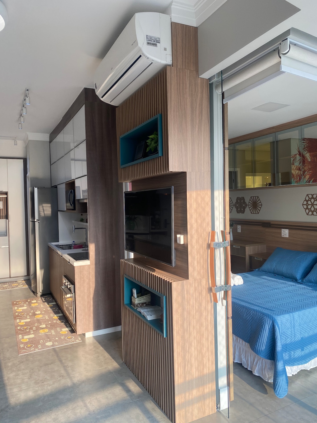 Oturma odası ve yatak odasında klimalı, donanımlı mutfak, ocak, fırın, mikrodalga fırın, akıllı TV, Netflix, Wi - Fi ve Santos Plajı'nın yemyeşil manzarasına sahip geniş balkonlu modern daire. Site içi dairenin biri ısıtmalı diğeri denize sonsuzluk mesafede olmak üzere iki muhteşem havuzu olan eksiksiz bir eğlence alanı vardır.