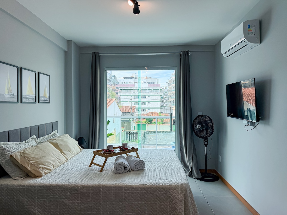Cabo Frio'nun en seçkin ve huzurlu bölgesi olan büyüleyici Passagem semtinde, Praia do Forte'ye sadece 5 dakika mesafede ve Picanha do Gugu restoranının yanında, bu modern daire zarafet ve konforu harmanlıyor. Çift kişilik yatak odalarında klima, 500 Mb internet, özel çalışma alanı, garaj ve geniş yataklar dinlendirici geceler sağlar. Tam donanımlı mutfakta üst düzey cihazlar ve çamaşır makinesi bulunur. Kaliteli yatak takımları ve havlular ile tertemiz temizlik sunuyoruz.