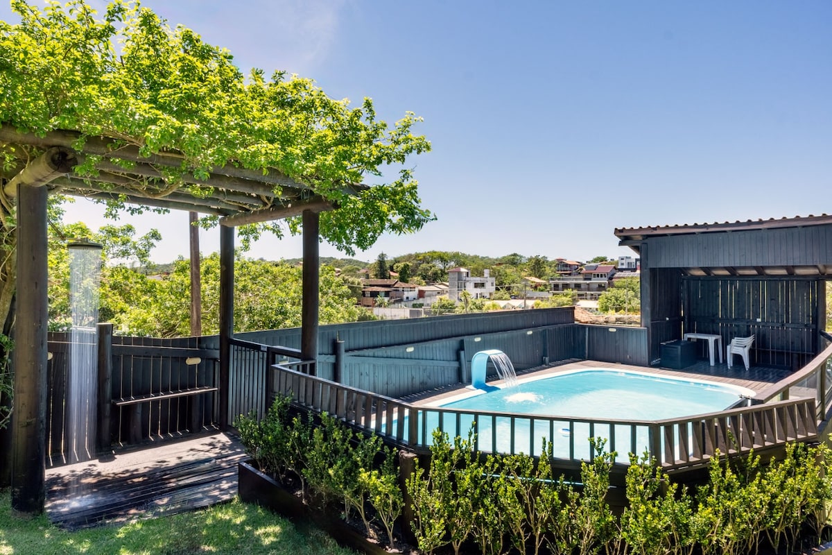 Praia do Rosa tepesinde kulübe, harika manzara, yüksek ruh hali, doğa, ferah, rustik ve rahat ortamlar. Lagünlerin ve testerelerin panoramik görünümü, sihirli gün batımları ve çeşitli yürüyüş seçenekleri ile araçla kolay erişim. Birkaç günlük sessizliğin tadını çıkarmayı sevenler veya tüm konfora sahip bir alanda, doğanın ortasında ancak plaja ve merkeze yakın bir yerde uzaktan çalışma yapmak isteyenler için ideal bir ortam. (1500 MTS) Fiber optik kablosuz internet bağlantısı Akıllı televizyon. Klima (soğuk) Kapalı Garaj