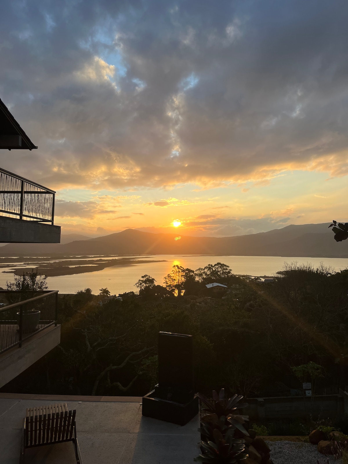 İnziva yerimiz dağın tepesinde, yemyeşil Atlantik Ormanı'nın ortasında bulunmaktadır. Özel bir kapalı sitede yer alan Casa do Céu Inn, mahremiyet, güvenlik ve gölün nefes kesici manzarasını sunan sadece iki üniteye sahiptir. Garopaba'nın en ünlü plajları arasında stratejik bir konumdayız: Bir patika boyunca kısa bir yürüyüşle Praia da Silveira'ya ulaşabilirsiniz; arabayla sadece beş dakikada Ferrugem ve Garopaba'nın güzel plajlarını bulabilirsiniz.
