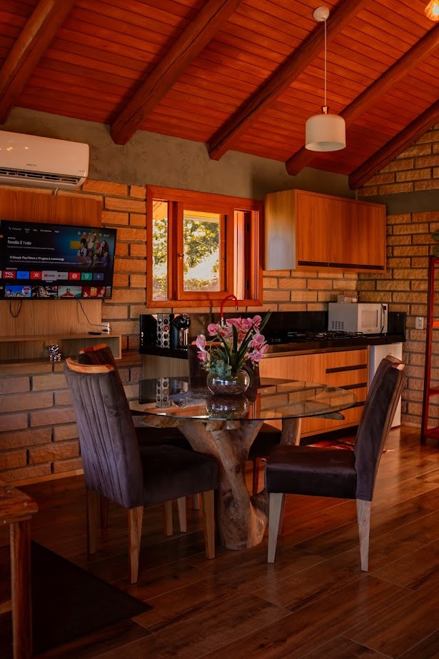 Imagine yourself in a house custom-made for unforgettable moments – as a couple, with family, or simply in peace with yourself. Welcome to Tiny House Cambará, an exclusive retreat in the midst of nature, with the comfort and charm that only those who have traveled a lot can appreciate. The result? A compact, luxurious house full of soul, made with steel frame – a modern, sustainable technique perfect for the mountainous climate.