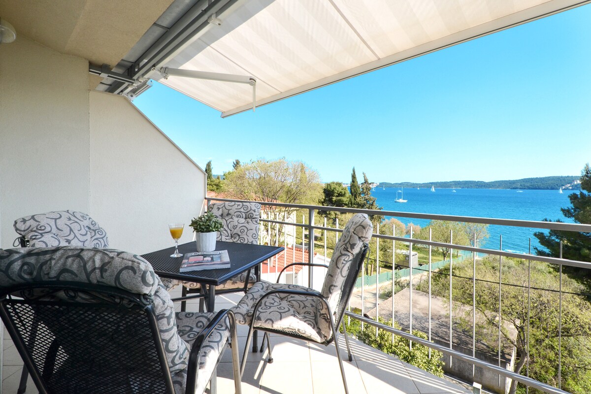 Royal, plaja 50 metre uzaklıkta, jakuzili, yeni, modern ve lüks yenilenmiş bir dairedir. 50 metrekare ve 30 metrekare terası vardır. 2 yatak odası, oturma odası, yemek alanına sahip tam donanımlı mutfak, harika duşlu banyo, barbekü olanakları, garaj (1 araba), her odada düz ekran TV ve ücretsiz kablosuz internet bağlantısı bulunmaktadır. Çevredeki adalara açık deniz manzaralı büyük bir teras sunar. Yakınlarda dalışın keyfini çıkarabilirsiniz. Trogir 5 km, Split Havalimanı ise konaklama yerine 8 km uzaklıktadır.