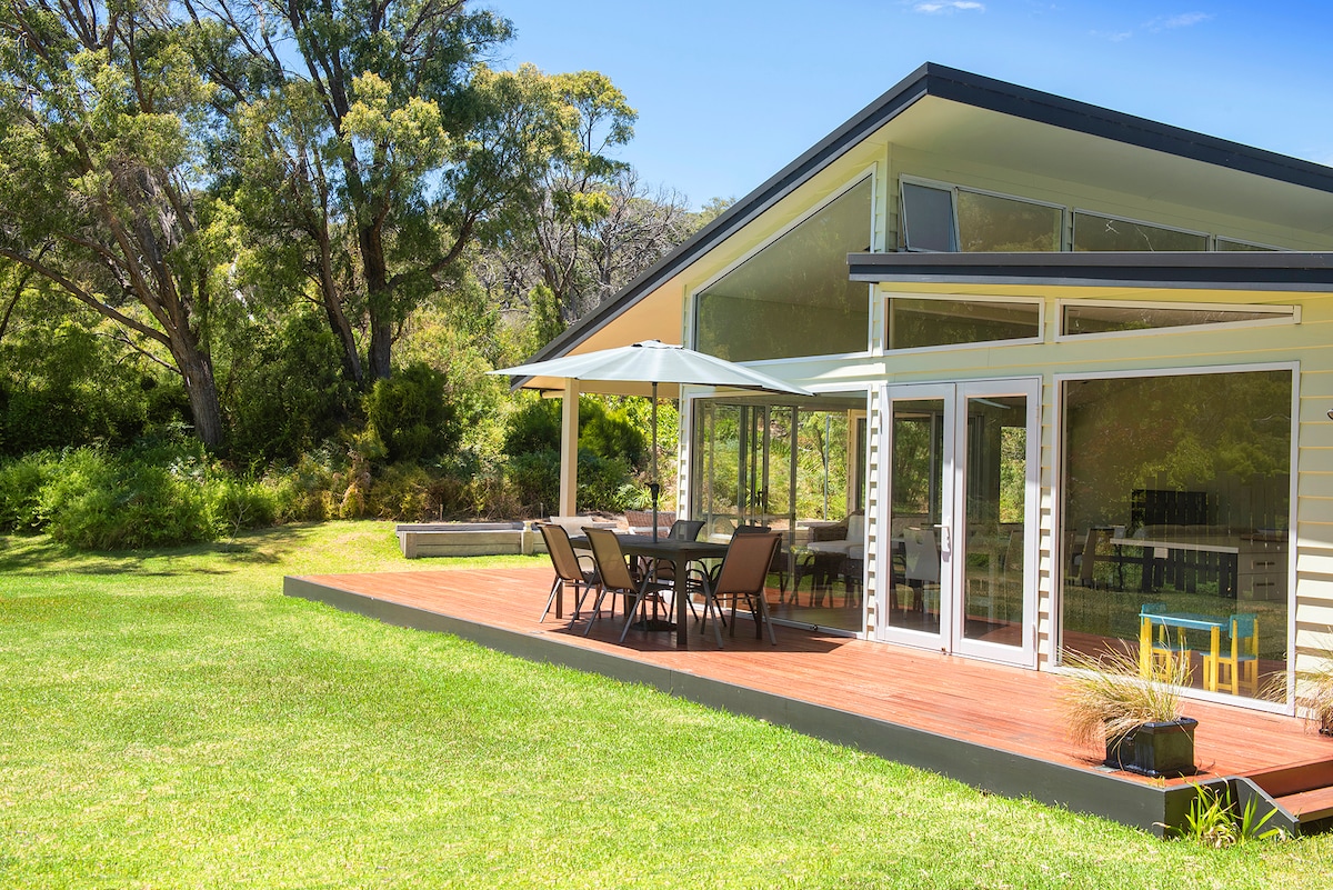 Zevkle tasarlanmış bu lüks tenha ev, 14 Acres özel çalılıkta yer almaktadır. Seveceğiniz şeyler: - Near Gnarabup/Prevelly Beaches -ear Leeuwin Estate Winery & Voyager Estate - Cape to Cape yürüyüşü ile Leeuwin Millî Parkı'na yakın. Margaret River Township'e arabayla 10 dakika mesafede. - Orman manzaralı büyük spa banyosu - Açık taş şömine - Tam donanımlı şefler mutfağı - Ensuites ile Kral Yatak Odaları - 2 çift için mükemmel bir inziva yeri