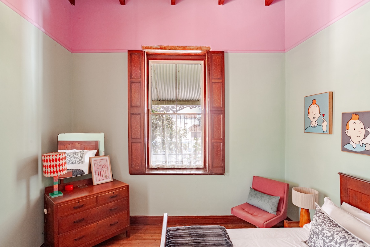 Central to restaurants, shops, art galleries, " At 85 on Church" is a spacious, charming house set in a large garden with a swimming pool and an outdoor braai (bbq) The back garden and swimming pool are shared with the guests of the cottage. This fully equipped house, sleeps up to 7 with 3 spacious bedrooms and 3 bathrooms. You may rent it alone or together with the garden cottage.