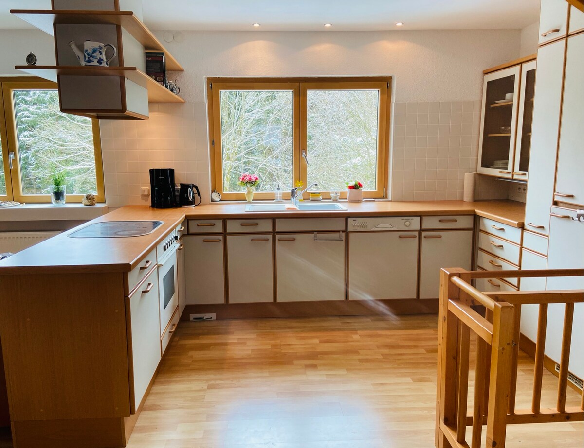 Within a 6000 sqm plot below the Veste Coburg you get a bungalow with every comfort. 3 rooms, 100 sqm, with kitchen (equipped with everything), two bathrooms, secluded terrace with large garden. Absolutely quiet and yet right in the middle of it all. 5 minutes by car and 10 minutes on foot to the center. High-quality furnishings. Floor-to-ceiling windows with a wonderful view of nature and Coburg.