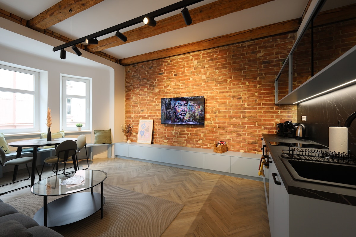 Bratislava'nın göbeğindeki endüstriyel cazibeli eviniz! Restorasyon yapılmış tuğla duvarı ve tavandaki ahşap kirişleriyle aydınlık bir daire, benzersiz bir atmosferle sizi büyüleyecek. Kahvenizin tadını çıkarın ve sokağa bakan yemek köşesinde dinlenin. Ulusal Futbol Stadyumu, Peugeot Arena veya TIPOS Arena'ya yürüyerek gidebilirsiniz (5 -10 dakika). Merkez toplu taşıma ile sadece birkaç dakika uzaklıktadır. Konser, spor ve Bratislava'yı keşfetmeyi sevenler için ideal. Sokağa veya bahçeye park edilebilir.