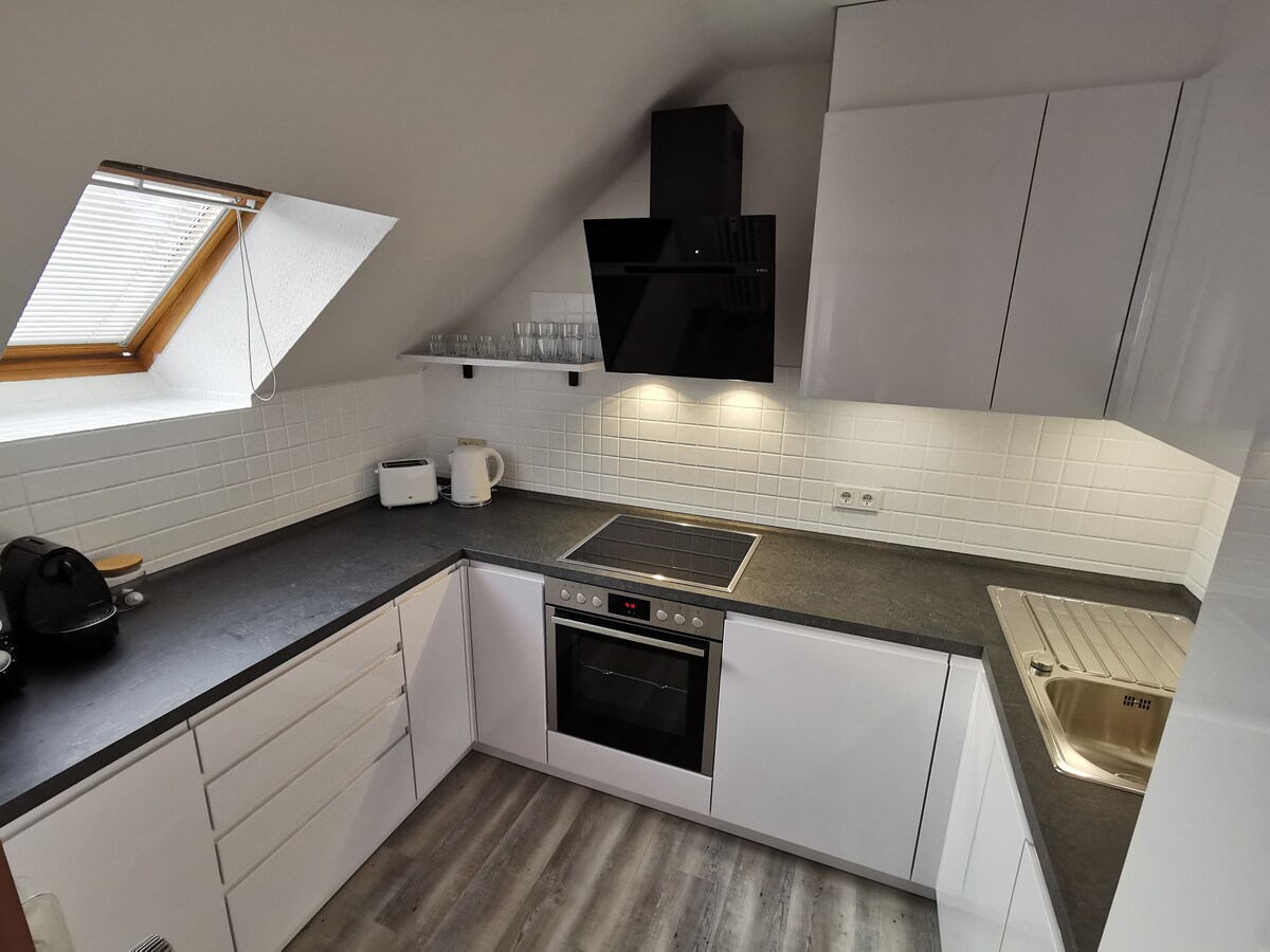 Knapp 45qm Maisonette Dachwohnung, mit allen was für eine kleine Stadtwohnung wichtig ist. Wohnbereich mit Couch, TV sowie Internet. Neuwertige Küche mit Herd, Ofen, Spülmaschine, Kaffeemaschine und Kühlschrank. Über eine Treppe gelangt man in den oberen Bereich der Wohnung mit Bad und Schlafzimmer. Kleines Tageslichtbad mit Wanne. Integrierte Glaswand lässt ein unkompliziertes Duschen zu. Schlafzimmer mit 1,60 Doppelbett. Begehbarer Kleiderschrank. Angenehmer Eichenholzboden