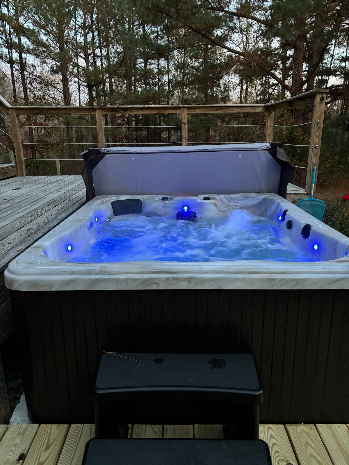 Unwind in our cozy, private traditional log cabin tucked amid pines. Step outside to take a romantic dip in your exclusive hot tub and gaze at the star-filled sky. • 2 comfortable bedrooms & 1 full bath • Full kitchen with dishwasher & coffee maker • Fast Wi-Fi & dedicated workspace • Backyard fire pit for nightly s’mores • Wraparound porch for coffee or nightcap • Quick drive to Caesar’s Virgina casino (25 mins) We are Superhosts and respond within the hour—reserve your escape today!