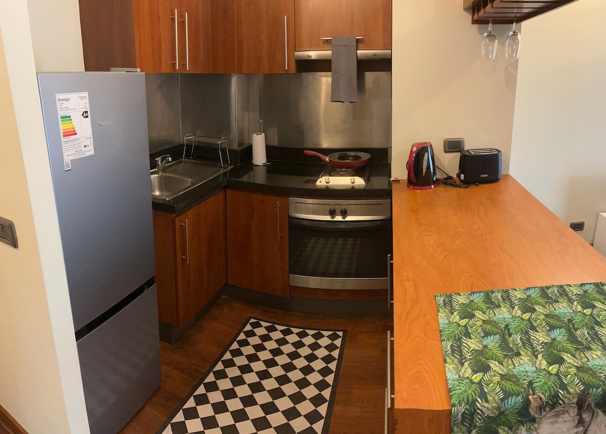 Rahat Stgo şehir merkezi stüdyosu, mutfak, banyo ve dolap