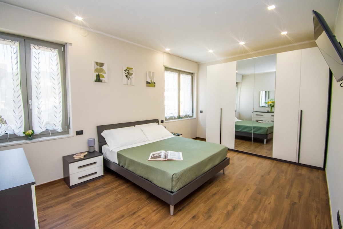Alloggio costituito da un ampia camera matrimoniale con terrazzo, bagno con comoda doccia e tutti i sanitari, all'interno di un appartamento (su due livelli) recentemente separato per offrire un adeguata privacy agli ospiti, situato al secondo e ultimo piano sottotetto mansardato. in zona tranquilla, comodo supermercati e servizi, pochi minuti a piedi dal centro e dalla stazione ferroviaria. Pochi minuti di auto comodo autostrada.