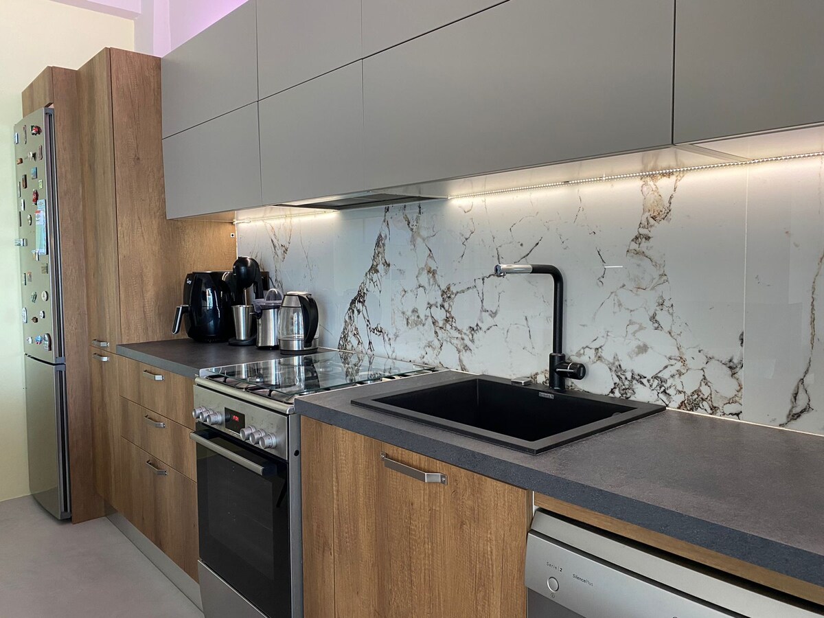 Ben Andriana, yarı İsviçreli, yarı Yunanlıyım ve ev sahibinizim. Patras'ın tam kalbinde, bu güzel 2 yatak odalı çatı katı dairesi, Yunan büyükbabama ait bir savaş öncesi binanın içinde yer alıyor. Bina Patras'taki en eski çalışan asansöre ev sahipliği yapıyor, ancak yeni bir asansör sizi doğrudan balkondan muhteşem deniz manzarasının keyfini çıkarabileceğiniz 4. kata getiriyor. Tüm dükkanlardan, restoranlardan ve barlardan sadece birkaç adım uzaktayken daire sessiz bir alan olarak kalır.