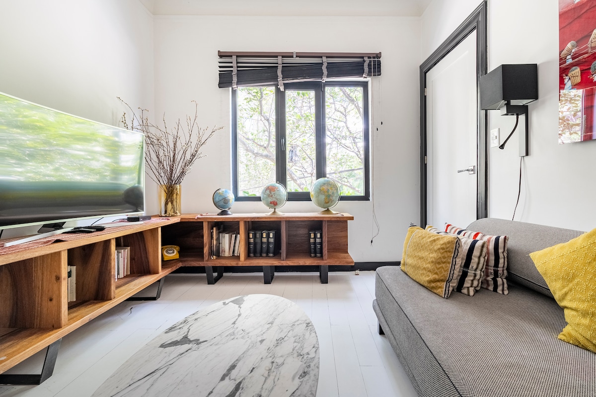 Benzersiz bir modernlik ve gelenek atmosferinde rahat, modern, şık. Özel kullanım için iki teraslı özel daire. Santa Maria'da, yeni moda kolonisi. Roma, Condesa, Chapultepec, Tarihi Merkez, Polanco ve havaalanına çok yakın bir konumda bulunmaktadır. Çok kolay iletişim ve harika gastronomik teklif. Deneyimi, önemli Meksikalı mimarlar tarafından inşa edilmiş tarihi bir evin içinde yaşayın. Geniş yataklı, iki teraslı, mutfaklı, yemek odası ve oturma odası olan konforlu ve modern daire. Otopark müsaitlik durumuna bağlıdır. İki bahçeli ve sulama amaçlı yağmur suyu gölet konnektörlü bir evin içinde ve wc. Muhteşem bir çağdaş Meksika mimarisinin içinde Katılıyoruz ve 24 saat alıyoruz Santa María la Ribera, büyük geleneklere sahip bir semttir ve CDMX'teki en iyi turist ilgi alanlarıyla çok bağlantılıdır Buena Vista bir blok uzaklıktadır, buradan havalimanına ve şehrin tüm alanlarına metro, metrobüs veya banliyö treniyle transfer edebilirsiniz